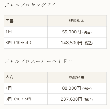 | 注入間隔 | ジャルプロスーパーハイドロ:1カ月に1回を3回 ジャルプロヤングアイ:2週間に1回を4回 |