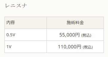 | 施術時間 | 麻酔:30分 施術:30分(使用量により異なる) |