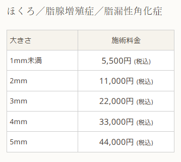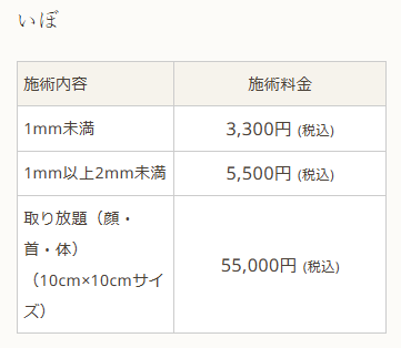 | 術後の通院 | イボは1週間後、ほくろは2週間後に経過診察が必要 |