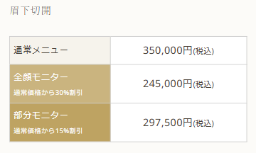 | 通院の有無 | ・入院の必要はありません ・1週間後に抜糸のためにご来院いただきます ・モニター様は術後の撮影のためにご来院いただきます |