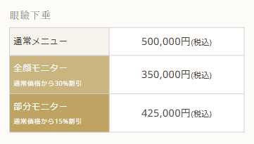 | 通院の有無 | ・入院の必要はありません ・1週間後に抜糸のためにご来院いただきます ・モニター様は術後の撮影のためにご来院いただきます |